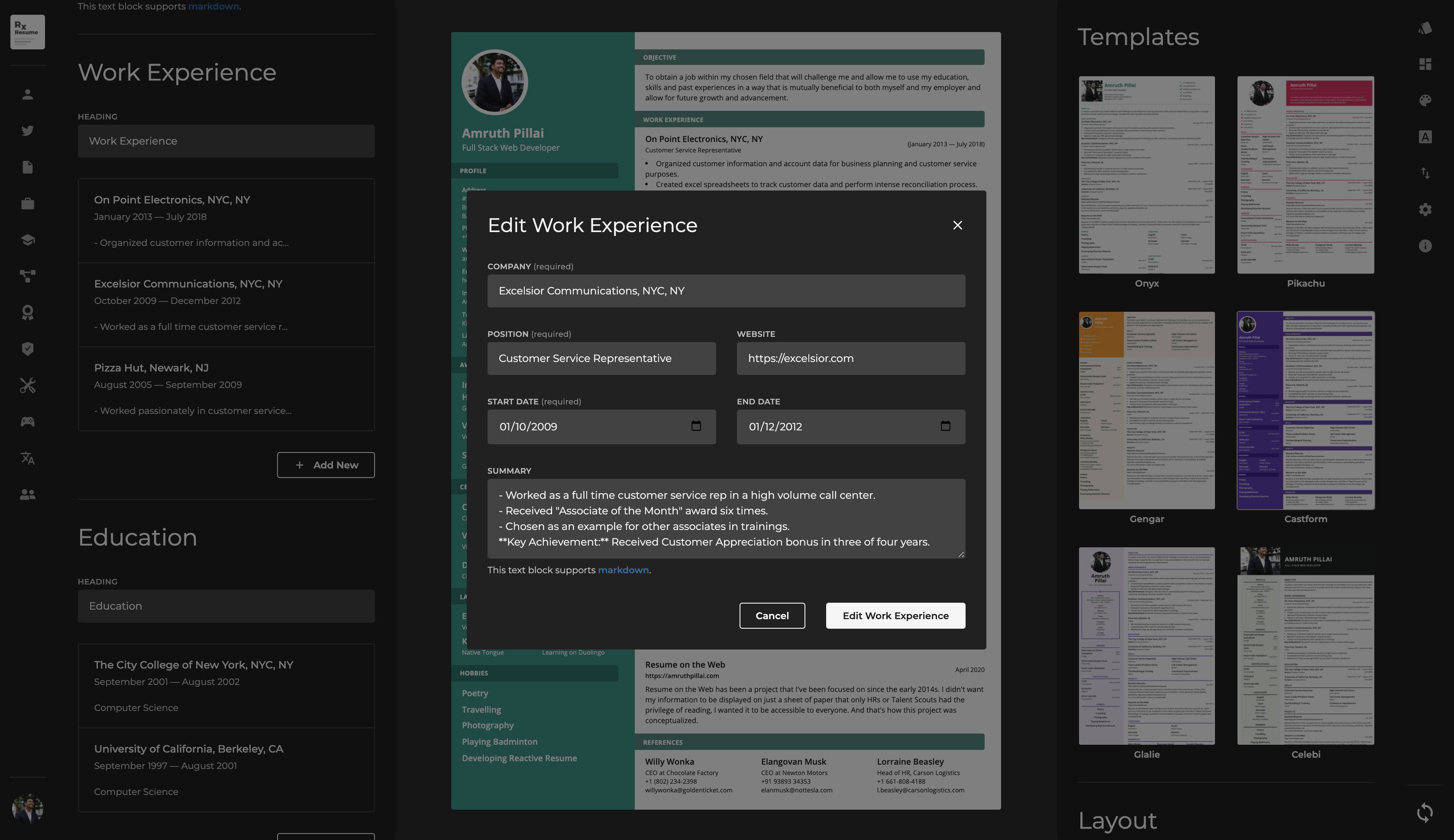 The biggest problem I’ve faced was when I had to update my resume when I learned a new skill or found a new job. The ever-shifting layouts and inconsistency with design over a number of years made it difficult to update your own resume, but Reactive Resume makes it as easy as few clicks.